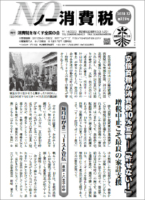 ノー消費税10月号が発行されました。この号は1面に、まず7月の西日本豪雨、9月の台風21号、北海道の地震災害へのお見舞を申し上げ、復旧・復興には政府の支援が強く求められていることを訴えています。そして、政府各省庁が提出した2019年の概算要求の中身をお知らせし、同時に増税中止へのさらなる運動を訴えています。